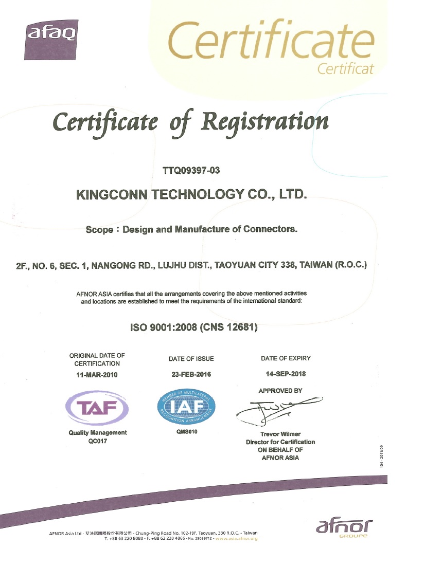 > 台湾通过ISO 9001认证! (2016)